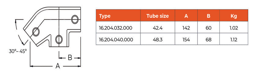 C041.204 Level to Sloping Down Tee 30° to 45° - Handrail Fitting