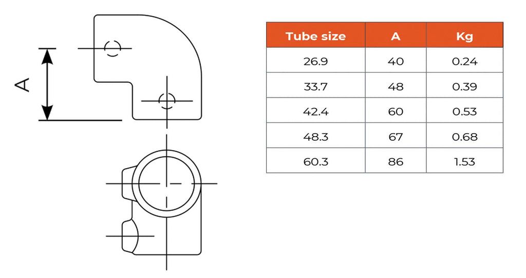 The C02.125 Elbow is a high-quality handrail fitting designed to create a secure 90-degree angle connection between two tubes. This versatile fitting is commonly used in balcony railings, handrail systems, and other applications where a strong and durable corner connection is required.
