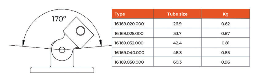 Holding an adjustment range of up to 170°, this base swivel combination is installed to provide a mounting bracket. Via it’s 2 x 10mm bracket holes, this fitting is regularly installed to walls or floors.