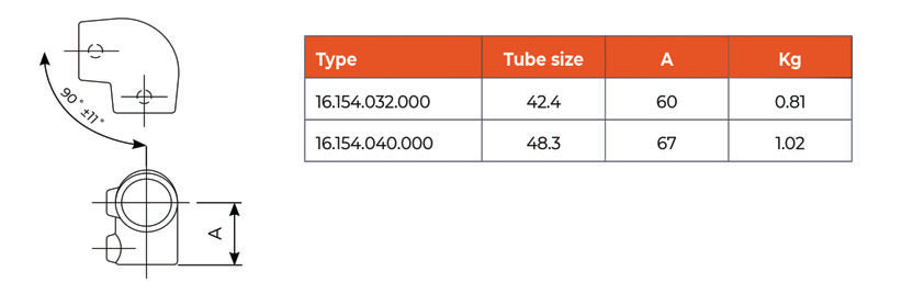 Most commonly applied to handrail installations on ramps, the C50.154 Slope Elbow 0° to 11° securely connects two tubes of the same diameter via C60 screws. Available in 2 sizes (42.4 and 48.3) this easily assembled slope elbow is manufactured from hot dipped galvanised malleable iron.