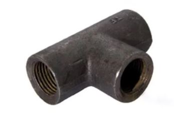 A forged pipe fitting in self colour manufactured from mild steel. Used for connecting three sections of pipe.